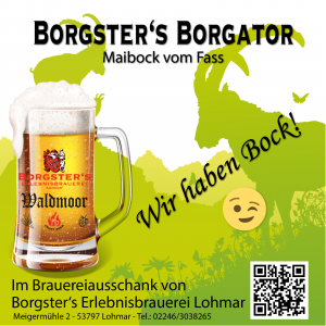 Mit dem traditionellen Maibock-Anstich feiern wir in der Borgster’s Erlebnisbrauerei in Lohmar den Start in die warme Jahreszeit.